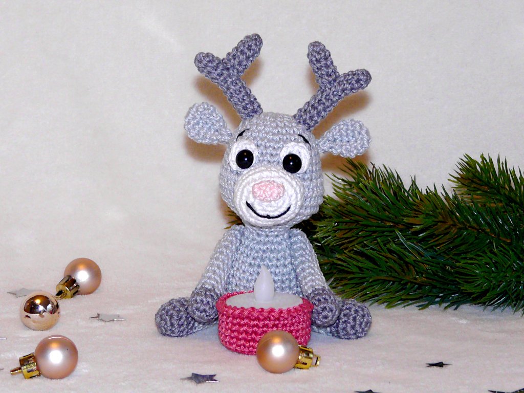 Especially during the winter and Christmas time, I love to sit comfortably on the couch with the light of tea lights and candles. For this I crocheted these cute reindeer tealight holders.