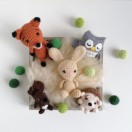 The cute little forest animals are perfect as mobile animals or as a pendant for a pacifier or stroller chain.