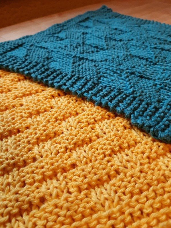 Dishcloths are an everyday necessity. They are used in the kitchen, bathroom and for cleaning up just about anything. These two dishcloths, with two different patterns, are knitted with knit and purl stitches. This way you can learn a new pattern as well as getting two new dishcloths. You can also use the patterns for other projects! Ideally for beginners. Tip: If you put 8 triangles next to each other you get a nice pillowcase!