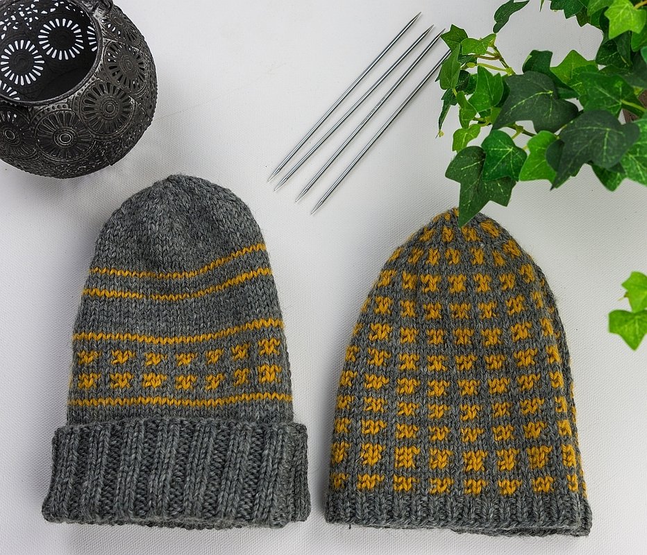 The patterns are easy to follow and to memorize, and are worked in slipped stitches, meaning only one color is worked at a time.