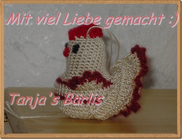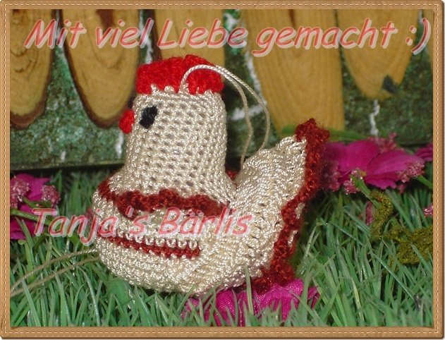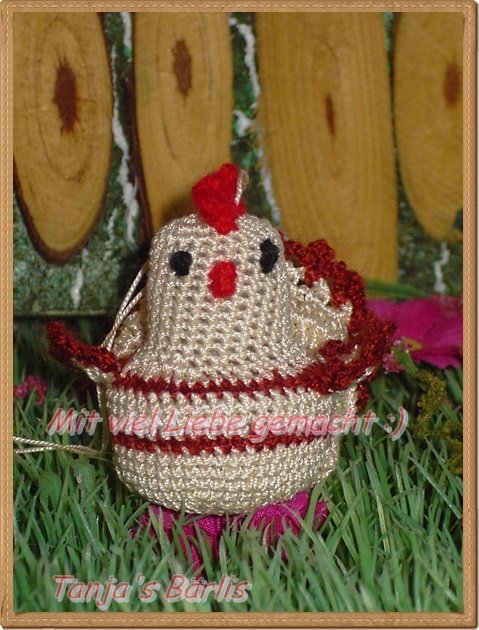 Hier ist eine Schritt-für-Schritt Arbeitsanleitung für eine HENNE und wird ein Sektkork umgehäkelt.