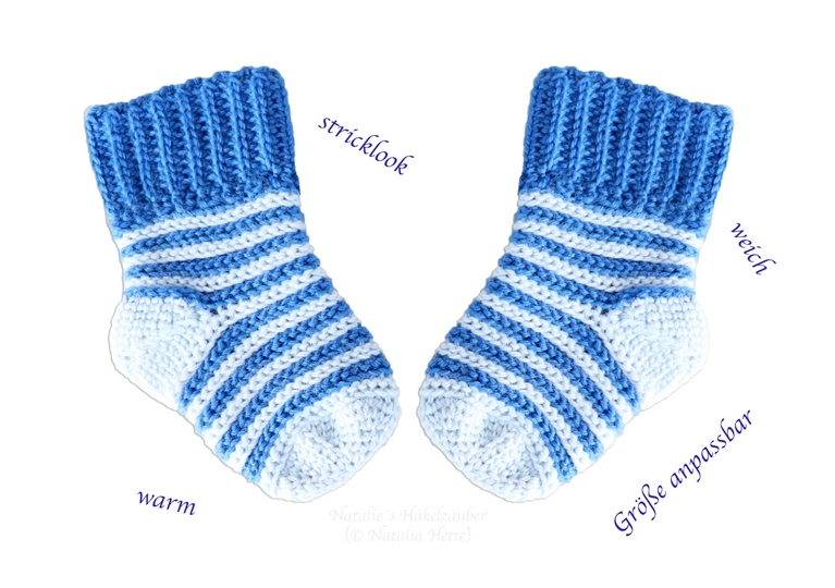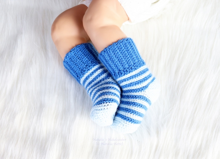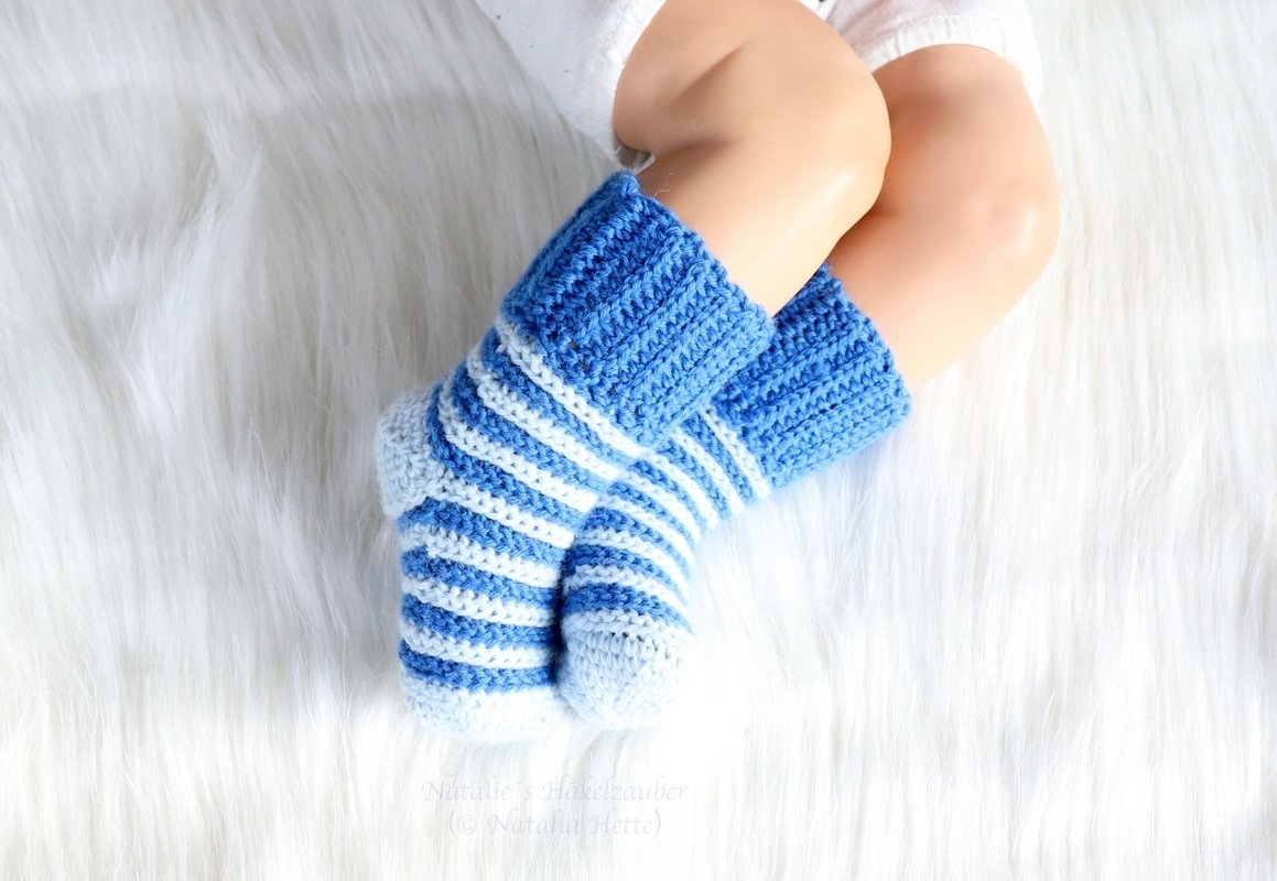 Crochet soft baby & child socks in knitted look quickly and easily for your child or grandchild is no problem with this tutorial! A pattern in knitted look, easily adjustable size make these socks a real eye-catcher!