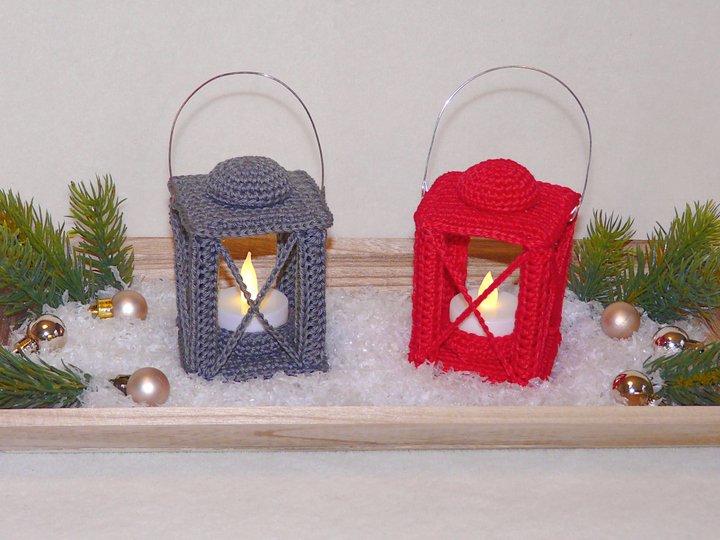 These little lanterns are a nice decoration for the winter and Christmas season. With their warm light they spread a cozy atmosphere in the dark season. The lanterns are crocheted very fast. Crochet them in your favorite colors and make you or your loved ones happy with them.