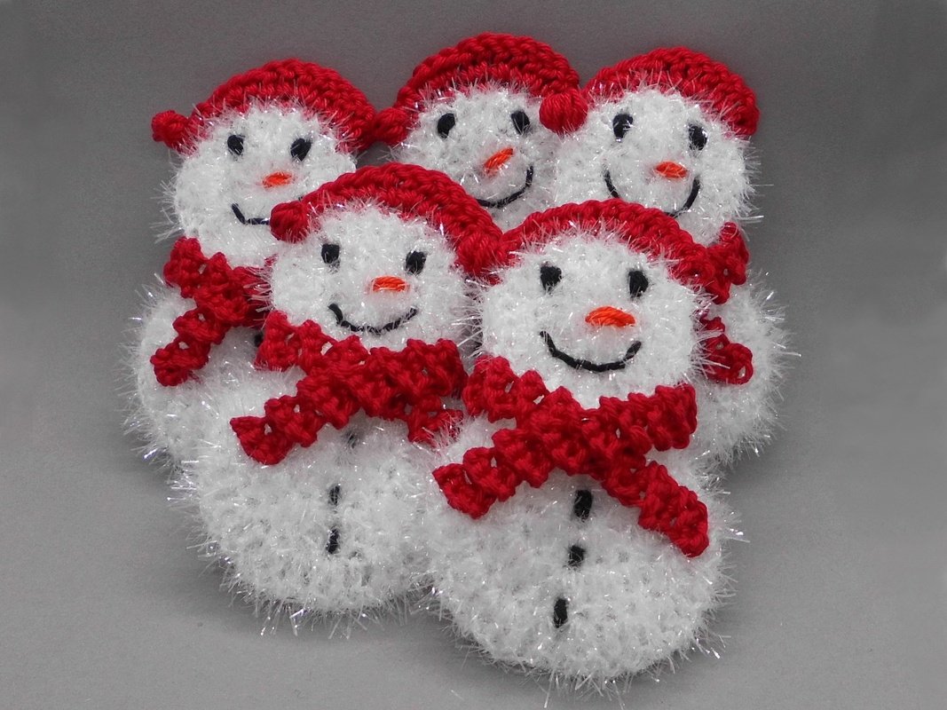 Die glitzernden Schneemänner werden ganz einfach und schnell aus Schwammgarn gehäkelt und können super vielseitig als Winterdeko, Geschenk-Anhänger, Schlüsselanhänger, Taschenbaumler, Girlande, Weihnachtsbaumschmuck und natürlich als kleine Waschpads für die Gesichtspflege verwendet werden.