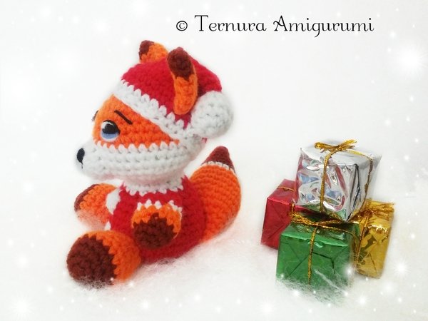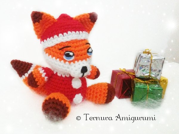 Rocco, the fox: His finished measurements are approximately 15cm. The size may vary depending on the size of the needle and wool.