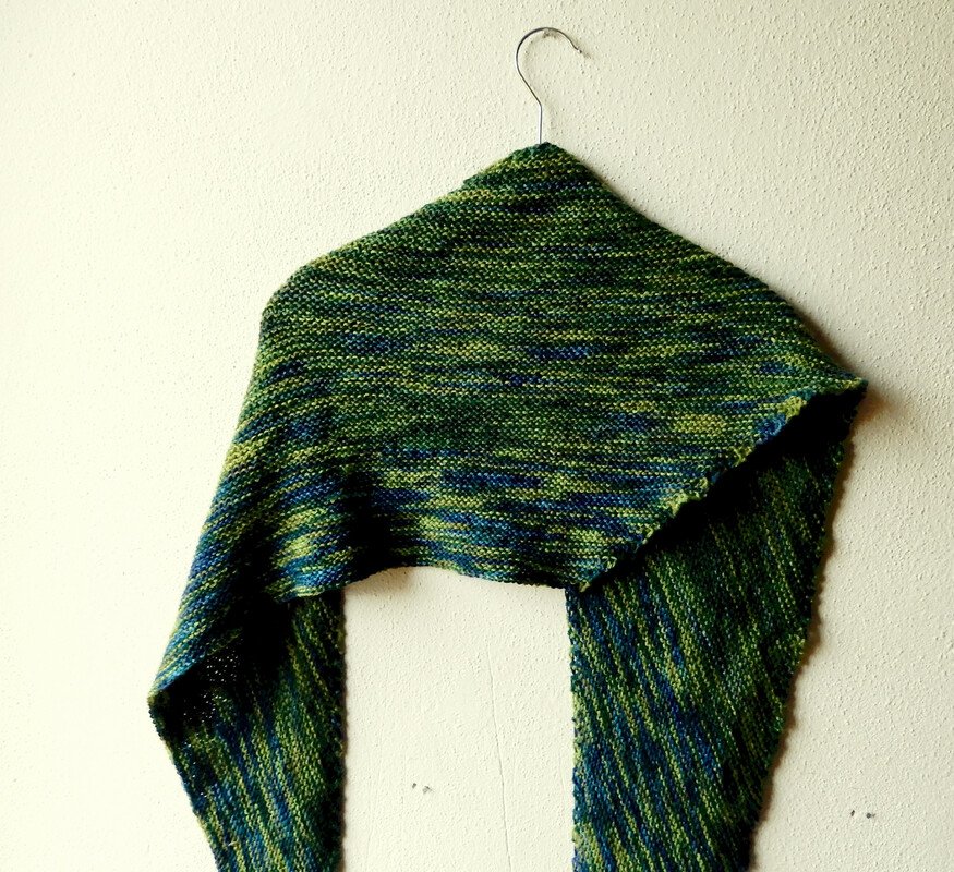 Moss is true speed knitting. If you are in need of a last minute gift, this chic triangular scarf is it. Worked in garter stitch and in worsted weight yarn, it knits up quickly.