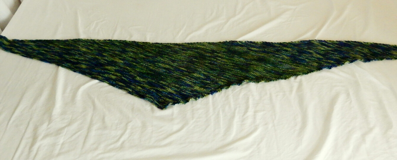The scarf is worked on the bias. A schematic ist included in the pattern to help visualize what happens where.
