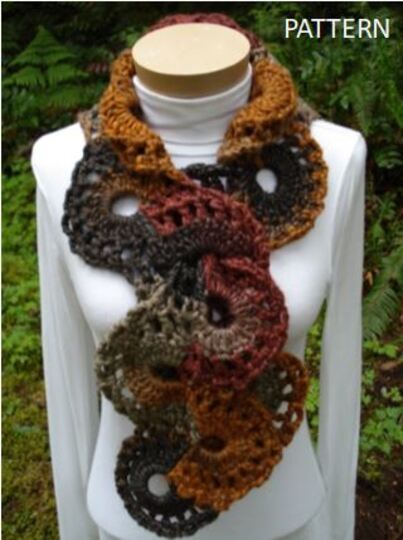 This offer is for a crochet pattern from Nancy Brown-Designer - a scarf that scrolls and swirls around the neck.