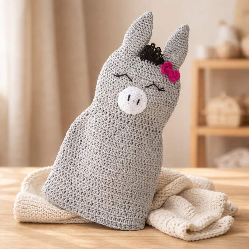 Tauchen Sie ein in die Kunst des Häkelns und erschaffen Sie mit unserer Anleitung ein liebevolles Schmusetuch in Form eines niedlichen Esels.