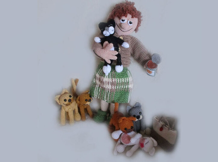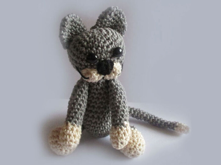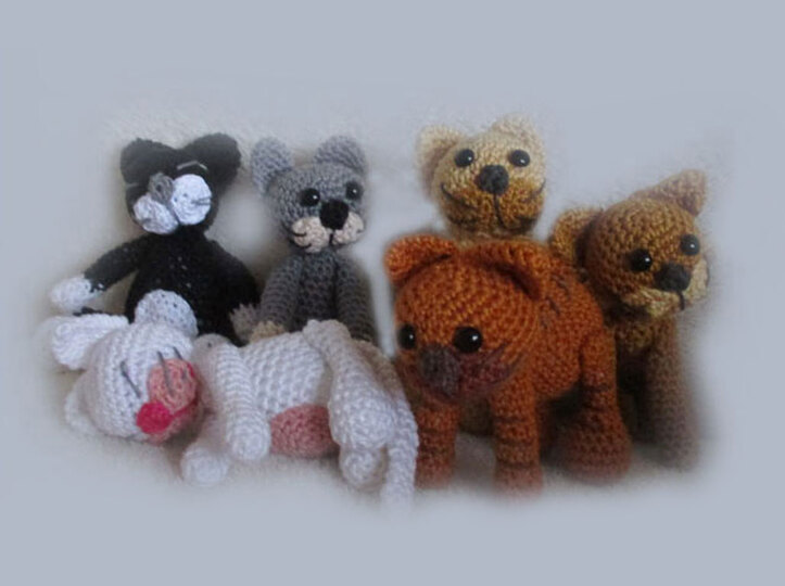 Phildar cotton : 2x skincolor (= Phildar cotton poudre), 1 x reddish brown, 1 x beige, 1 x gray, 1x off white. Different colors for the kittens (rest of wool)