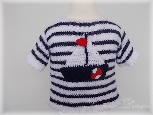 Ein maritimer Baby - Kinderpulli für den Sommer oder mit einem langarmigen T -Shirt auch schon im Frühjahr tragbar.