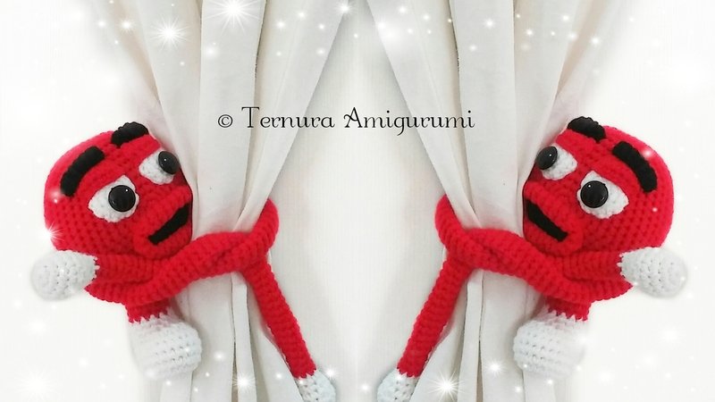 This monster is ideal to hold the curtains of the rooms. You can decorate the room of children and babies, you can do it in other colors and customize them according to the decoration of your home. You can give them away and the kids will love them !! Its finished measurements are approximately 18cm. The size may vary depending on the size of the needle and wool.