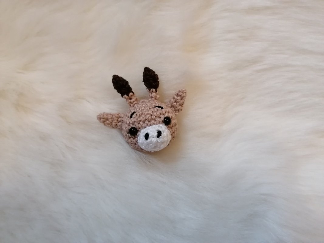 With crochet hook 3.0 mm and the Schachenmayr Catania wool the giraffe pendant 4.5 cm tall.