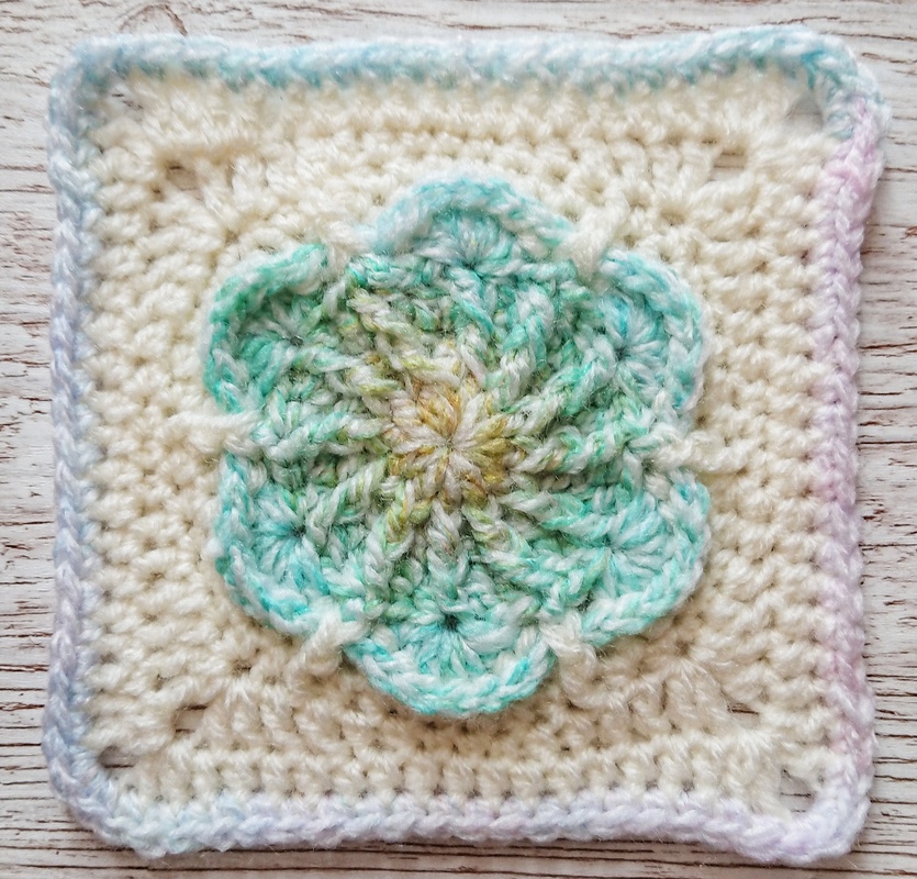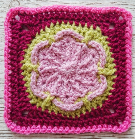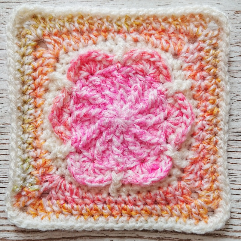 This easy to make, textured granny square with a flower motif in the centre is inspired by my other design, the Sakura Face Scrubbies.