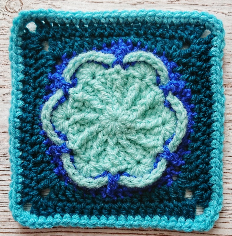 Finished size of the square is approx. 5”x 5”, which can be used to make a big, granny square blanket.