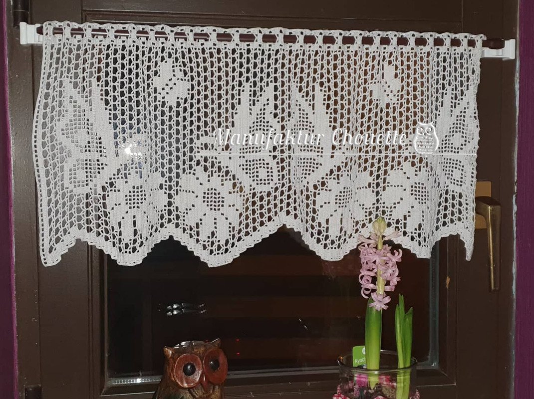 Du kannst gern so viele Gardinen häkeln, wie Du möchtest. Mit einem Hinweis auf mein Urheberrecht der Anleitung darfst Du Deine selbst hergestellten Gardinen auch zum lokalen Kauf anbieten. Angebote als Auktion sind NICHT gestattet!"