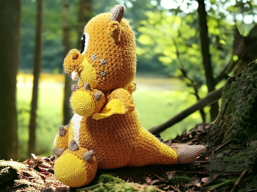 The finished dragon will be about 35cm high. Of course, the size can vary depending on whether you crochet tight or loose. The choice of wool is also important. I crochet with cotton yarn 125m/50g (100% cotton) and Himalaya Dolphin Baby 120m/100g.