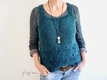 LANG YARNS: 125 (150) 175 (175) 200 g = 5 (6) 7 (7) 8 balls = 550 (660) 770 (770) 880 m = 601 (722) 842 (842) 962 yd „Novena“ (50% virgin wool, 30% Alpaca, 20% Polyamide, yardage 110 m = 120 yd/25 g), I used the color “Dark Teal” (= Color-No. 0088) NOTE: The consumption is calculated for a total height of 52.5 (54) 55.5 (57) 59 cm = 20,75 (21,25) 21,75 (22,5) 23,25”. Please allow for a little more yarn in case of a longer version! If you want to knit a shorter crop-top, you need a little less yarn.