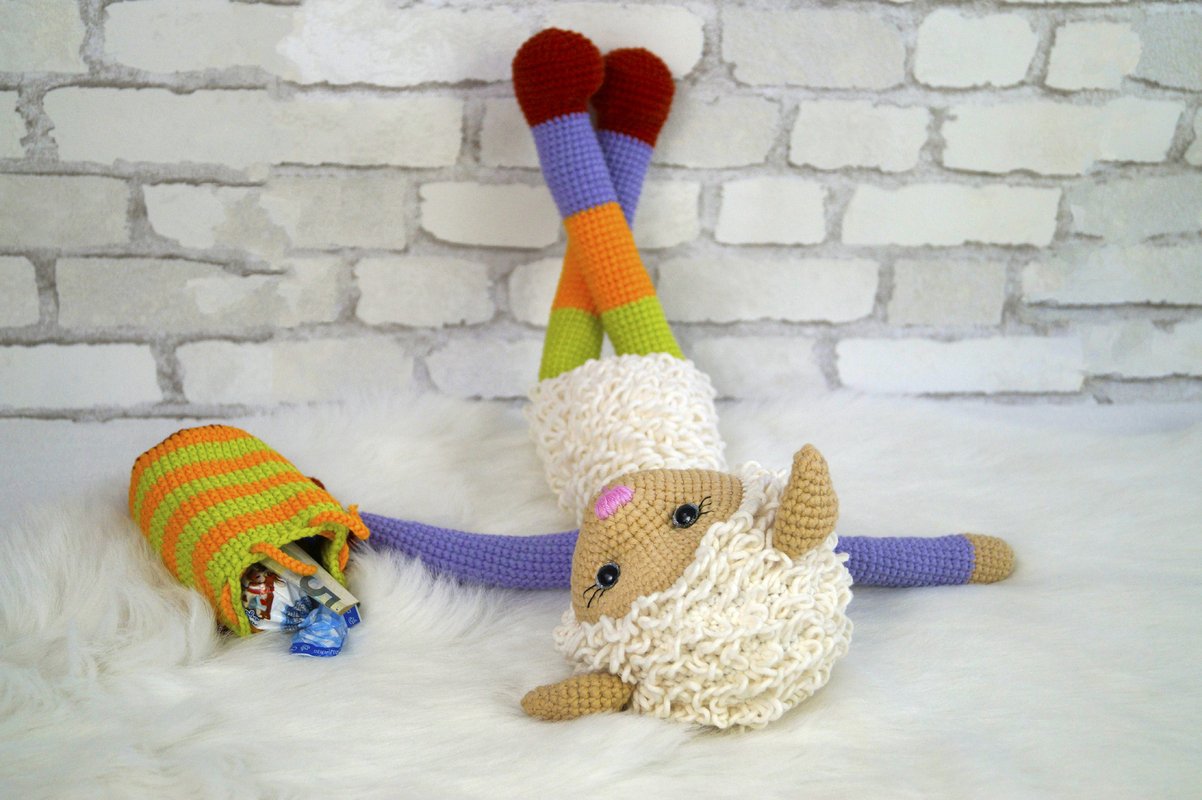 The required knowledge is: stitch, single crochet, slip stitch, chain, changing colour, loop stitch