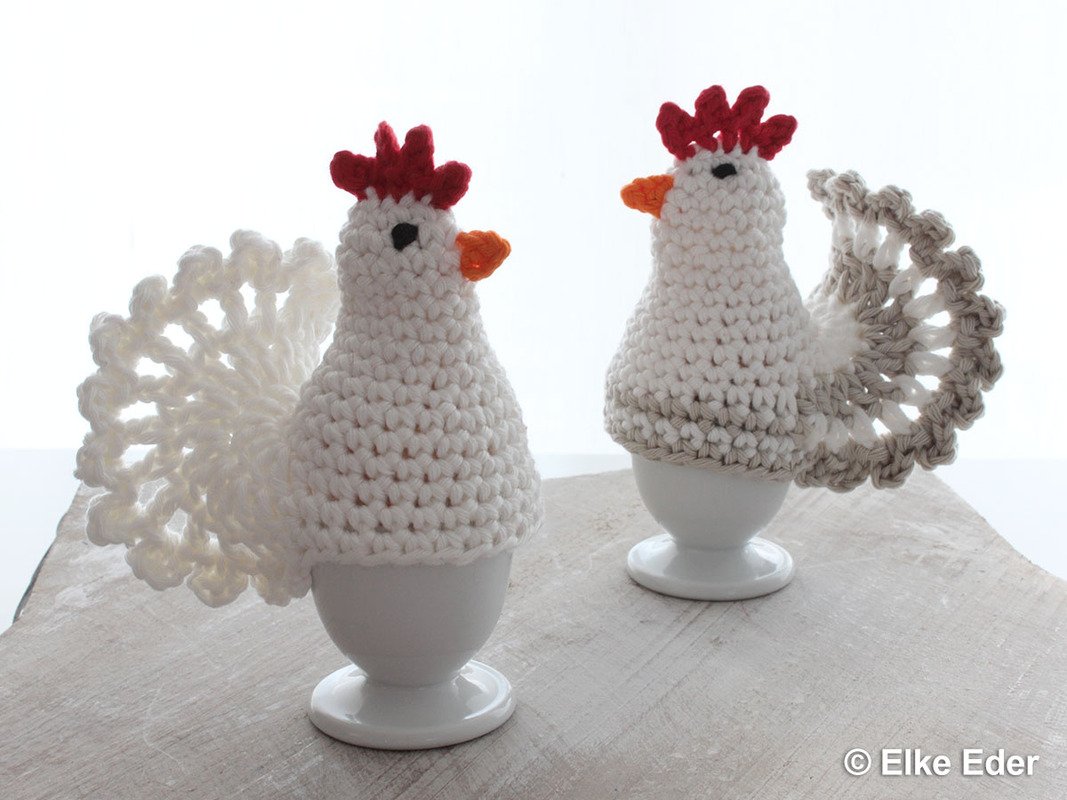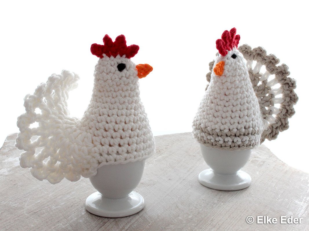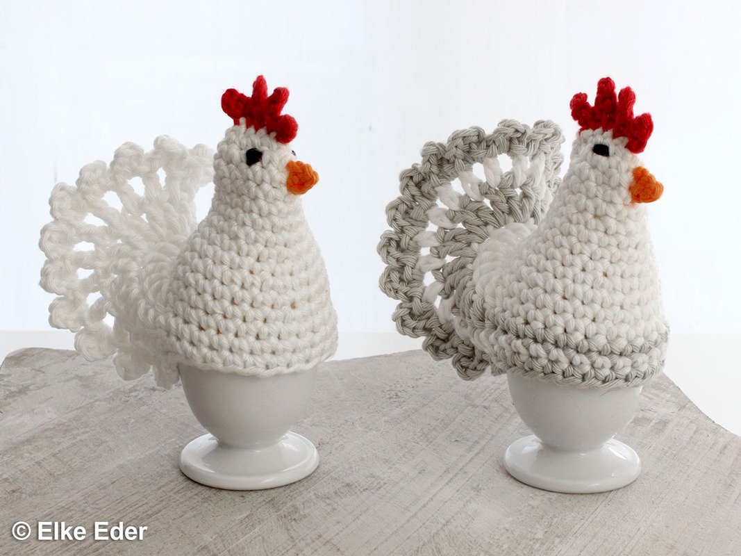 Who does not remember these cute egg warmer hens, as they were usually already used by grandma. I worked them with thick yarn and modified them a bit and I'm completely in love with the sweet poultry.