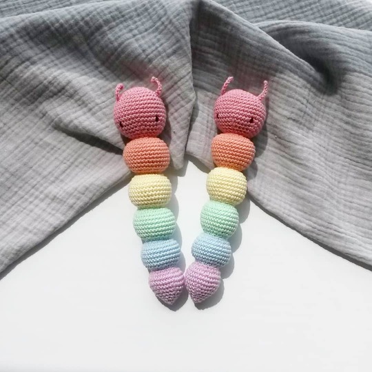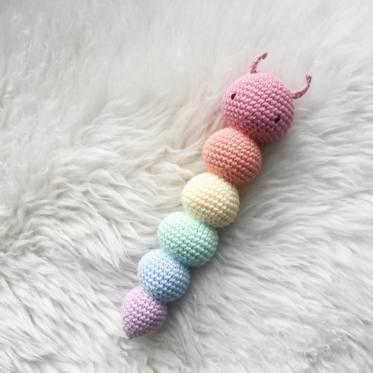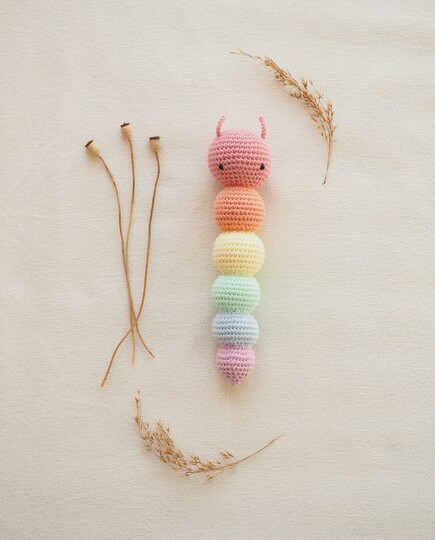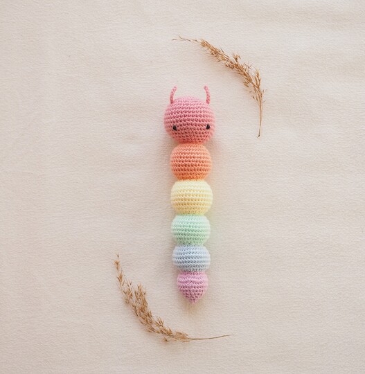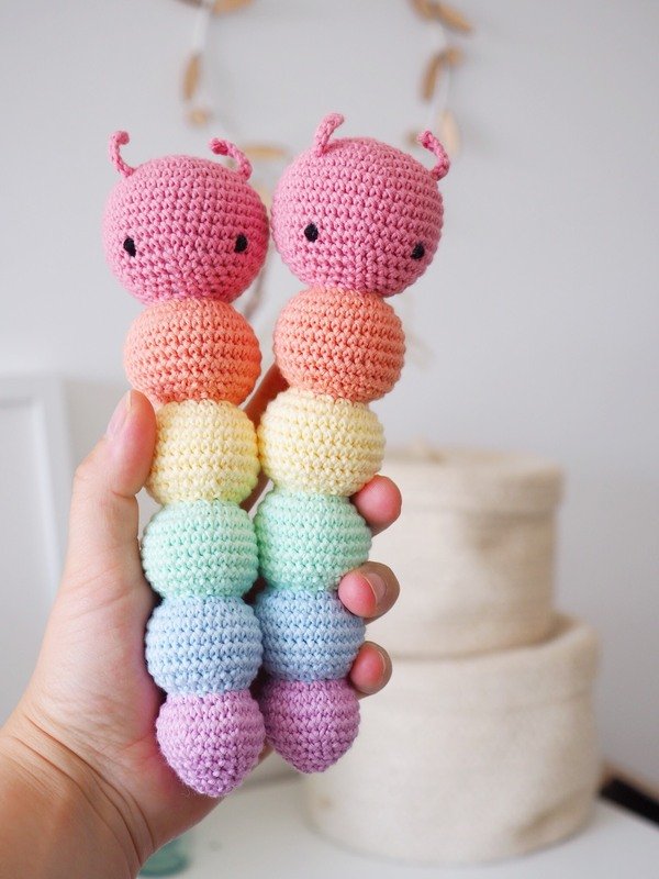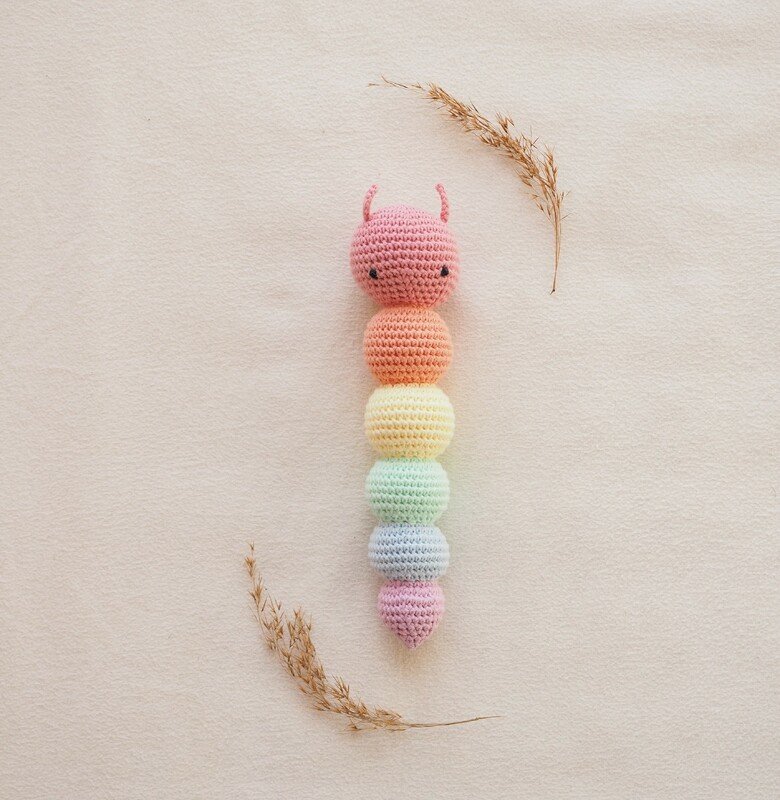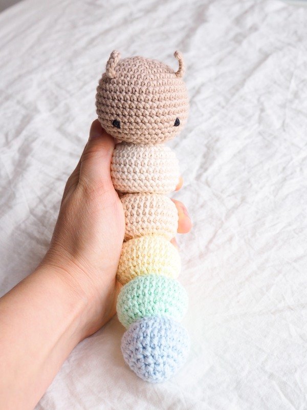 In dieser Anleitung zeige ich Dir Step by Step wie Du Kitty die Raupenrassel selber häkeln kannst.