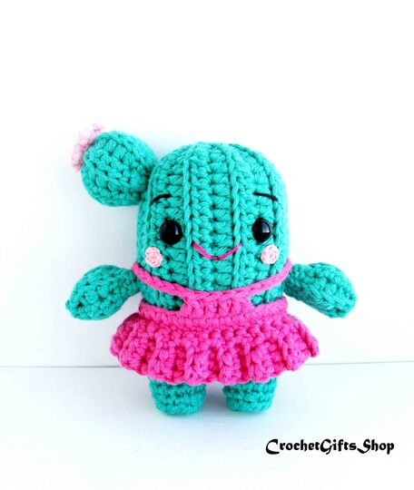Cute Crochet Amigurumi Cactus in Skirt Overalls