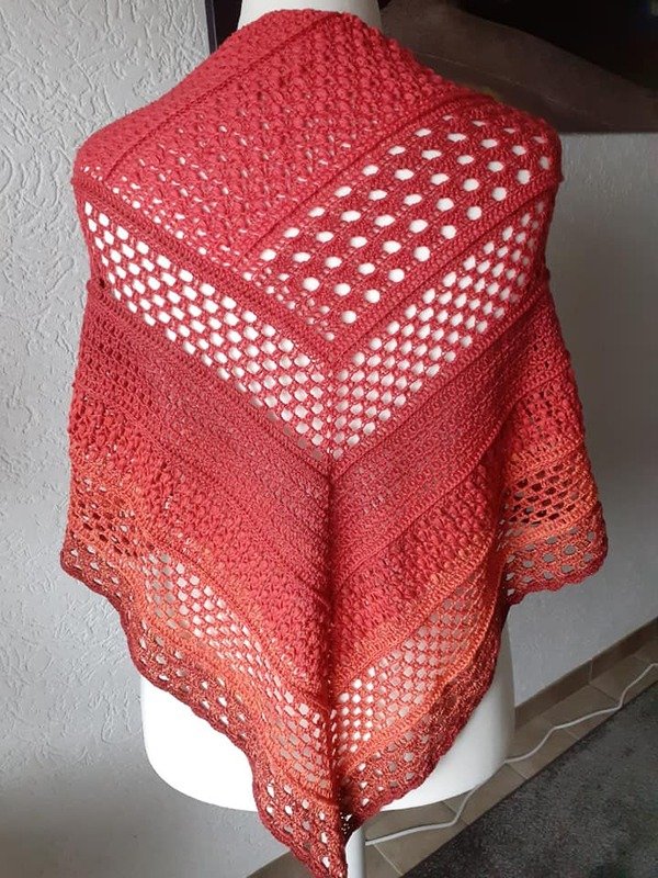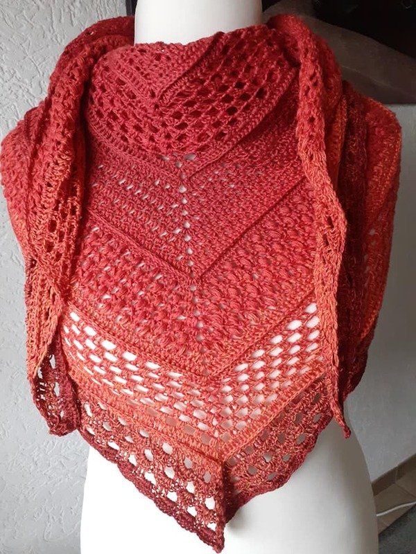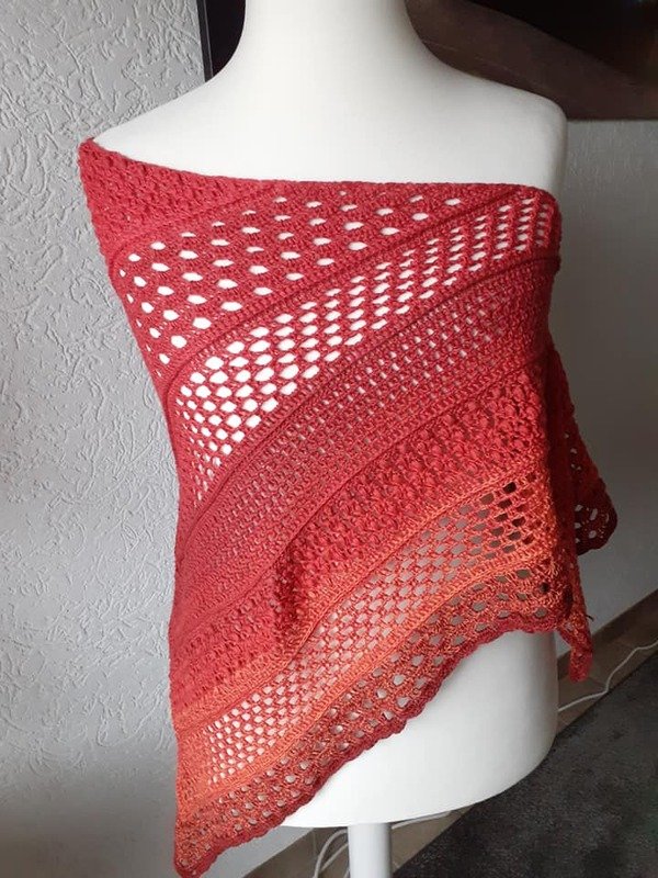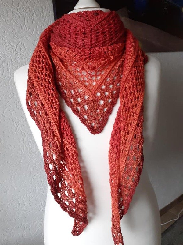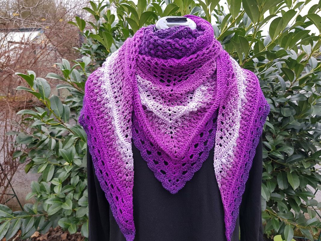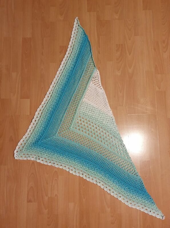 Mein Tuch wurde mit 1.000m 4fädig und NS 3,75 ca. 1,80cm x 75 cm groß.