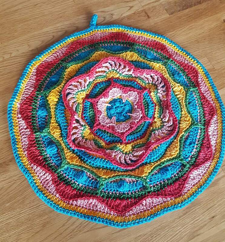 Im Sommer letzten Jahres hatte ich die Idee meine Küche mit dekorativen, nützlichen Elementen dekorieren zu wollen. So entstand die Idee zu einem Topflappen-Set in Form von vier Mandalas.