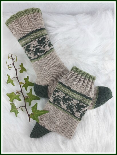 Hiermit erhältst Du eine komplette Strickanleitung über 5 Seiten der Ivy Socken.