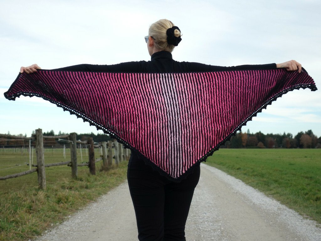 Dieses Dreieckstuch ist in der Technik "Illusionsstricken" gearbeitet.