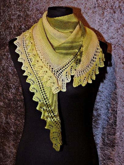 Das Tuch "Éowyn" eignet sich hervorragend für die Verwendung von Lace-Garn oder 4-fädiger Sockenwolle. Die Wahl des Garns beeinflusst das Endresultat und ermöglicht es dir, das Tuch an deine eigenen Vorlieben anzupassen.