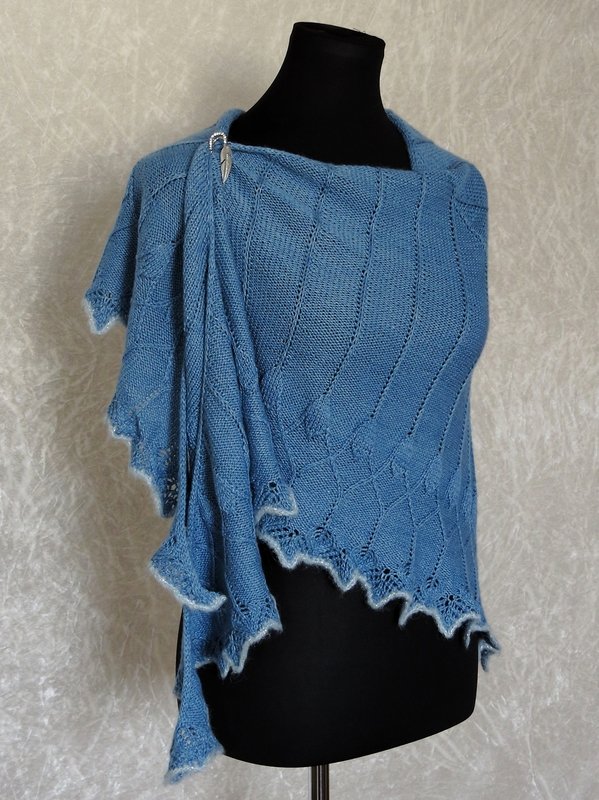 Das Tuch "Nenya" ist ein beeindruckendes Strickprojekt, bei dem du von oben nach unten strickst. Mit seinen veschlungverschlungenen Linien und der wunderschönen Blätterborte wird dieses Tuch garantiert alle Blicke auf sich ziehen.