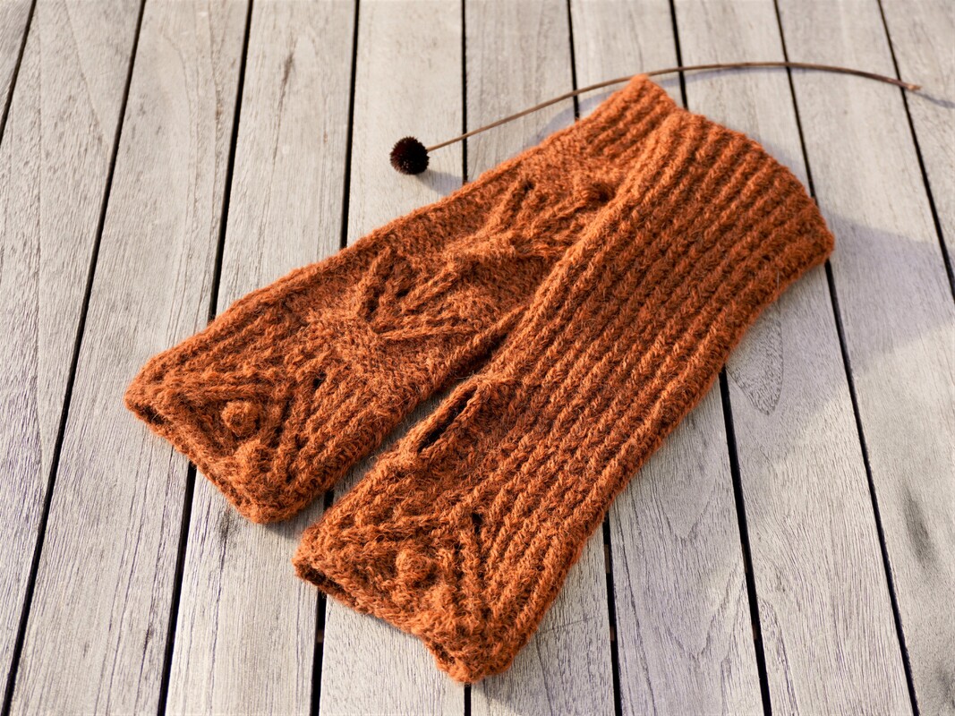 With these instructions, you can knit arm warmers (without thumb holes) and hand warmers (with thumb holes)! Both versions are described! Knit in rounds with double-pointed needles - and, for the thumb holes, also in rows for a short section. Two different lace patterns with small bobbles form the decorative element, while a ribbed pattern ensures a good fit. The pattern is both charted and written.