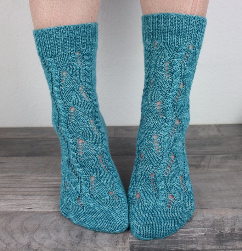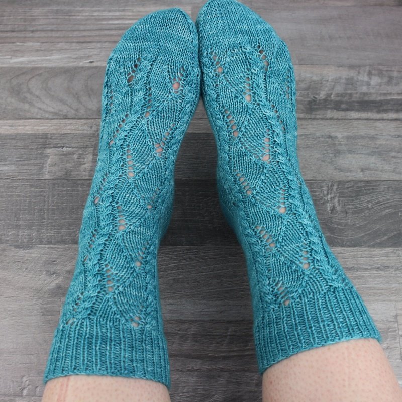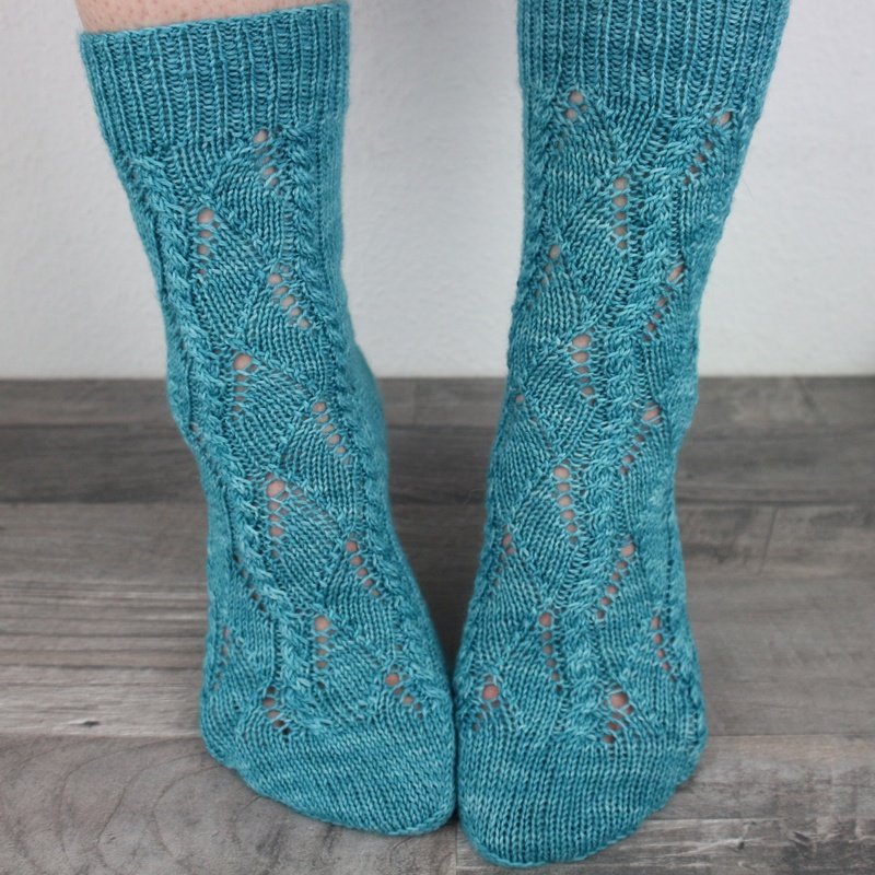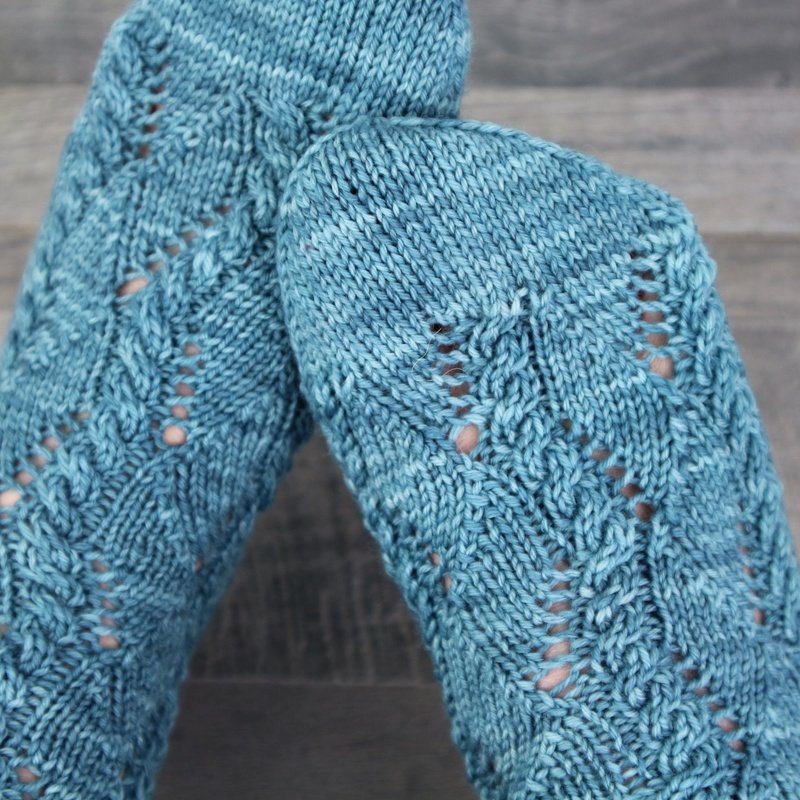 This pattern is ideal for knitters who already have experience knitting socks and enjoy working with textured stitch patterns. The interplay of lace and cables keeps the knitting engaging while maintaining a steady, enjoyable rhythm.