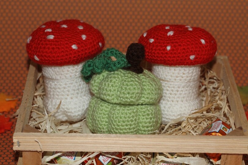 Üs lassen sich öffnen und als kleine Box verwenden. Sie bestehen aus umhäkelten Ü-Eiern (die normalen Ü-Eier).