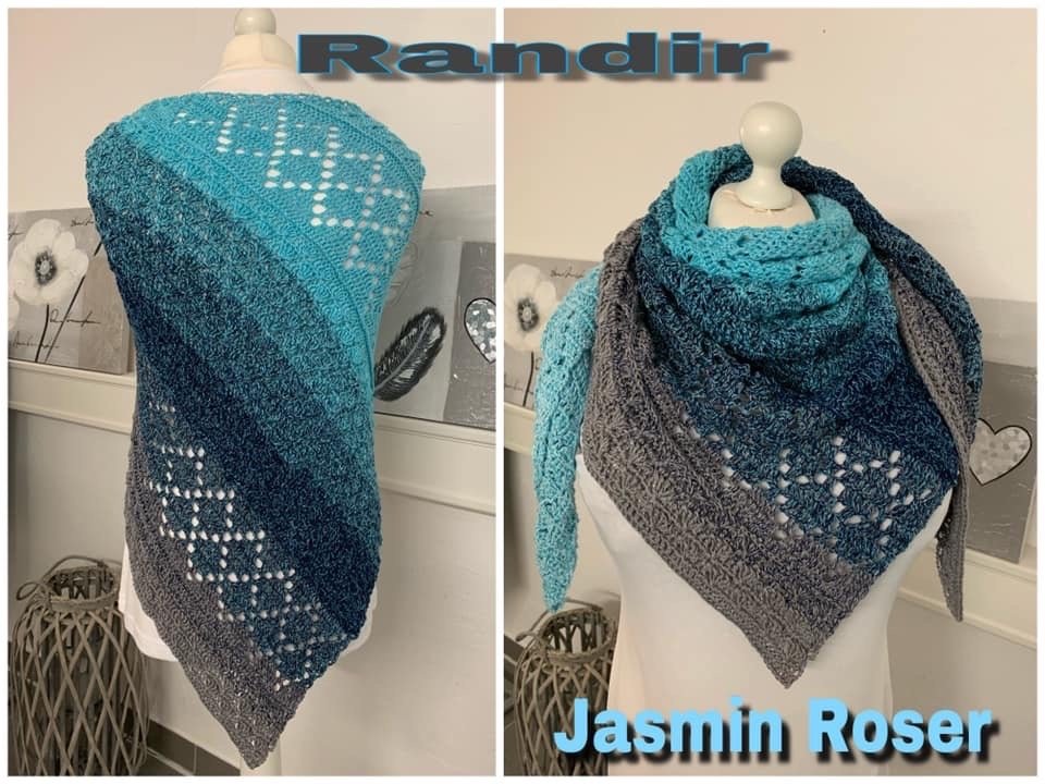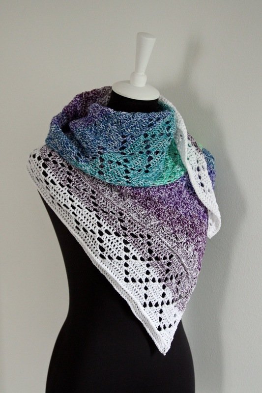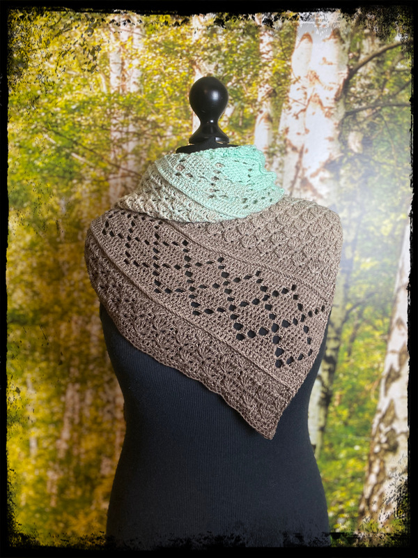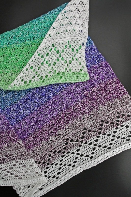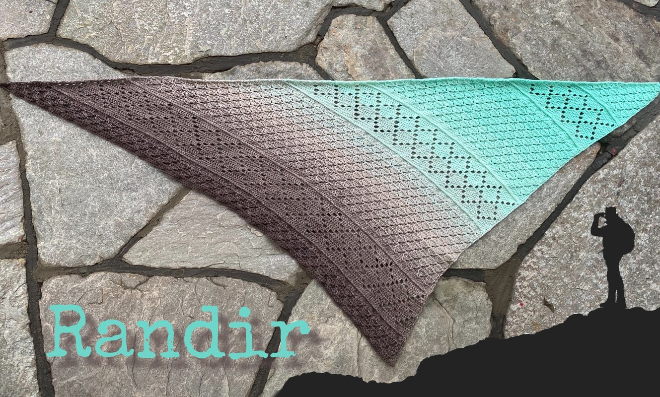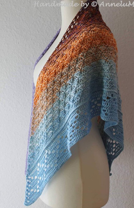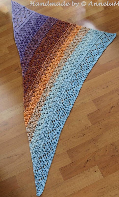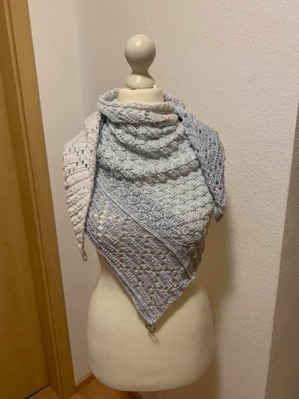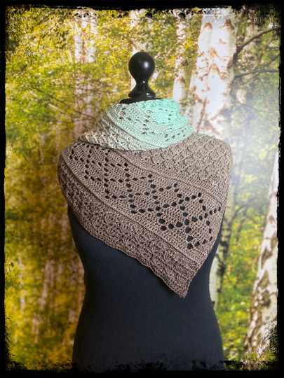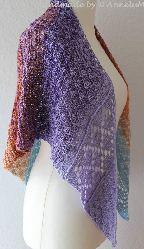 The shawl has a slightly asymmetrical shape and is worked from right to left.