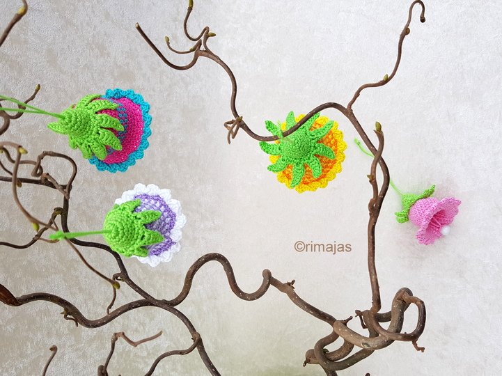 Die Strauchblüten kannst du in zwei Größen mit deinen Wollresten schnell häkeln.