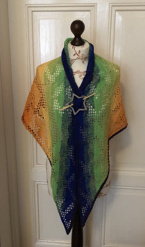 "Rautenherzen" - Ein wundervolles Motiv - zeitlos, dezent und ein wenig romantisch. Das Tuch hat eine Größe von ca. 2,00m x 0,75m. Der Verbrauch liegt bei ca. 1000llm. Es wurde mit einer 3er Nadel und einem 3-fädigem Farbverlaufsgarn gehäkelt.
