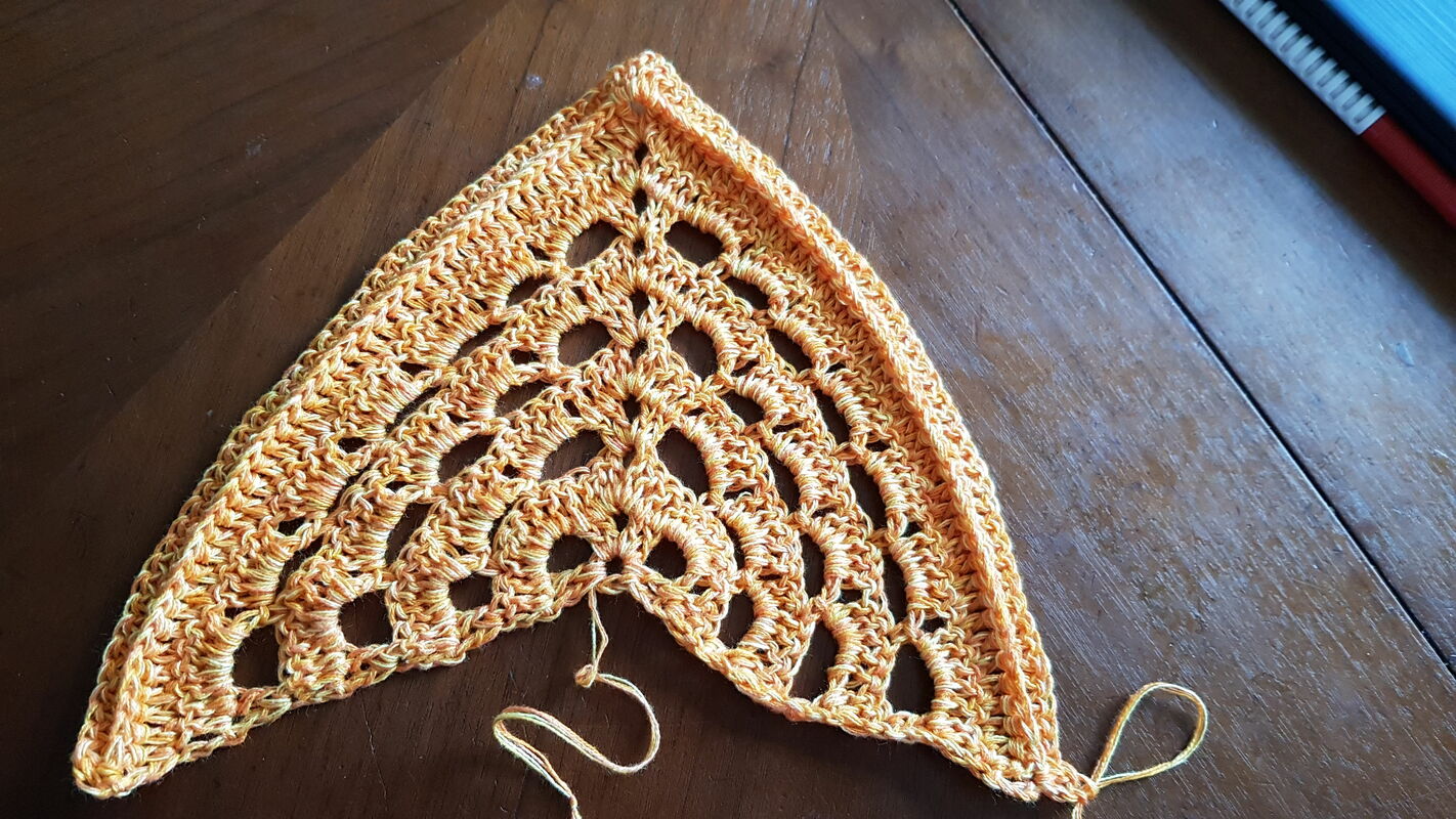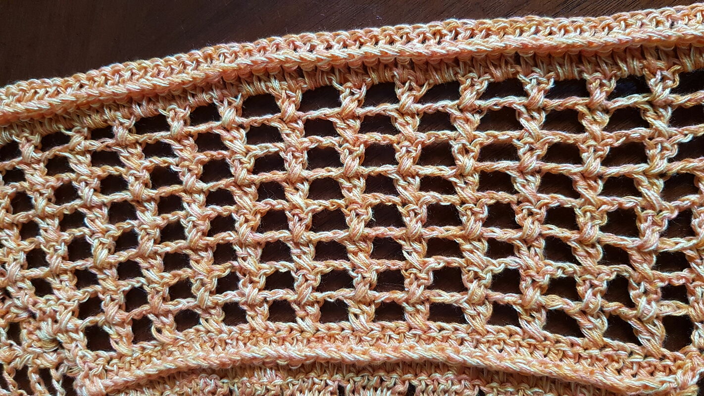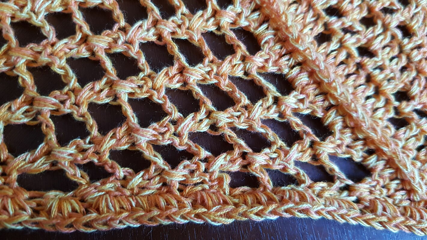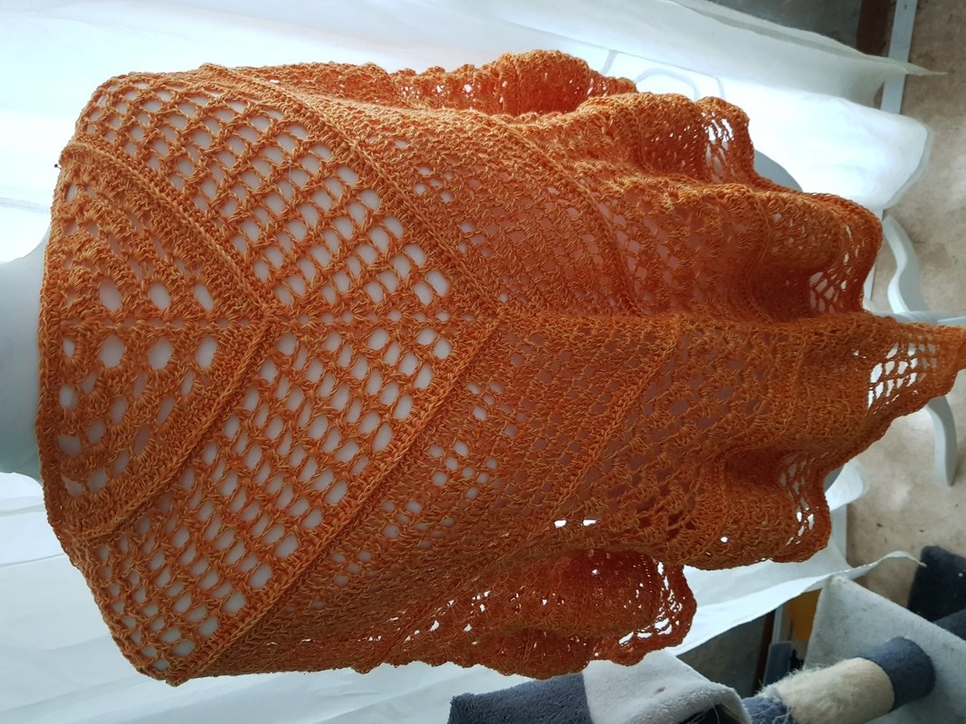 das Tuch wurde mit einem 1000llm Bobbel gehäkelt