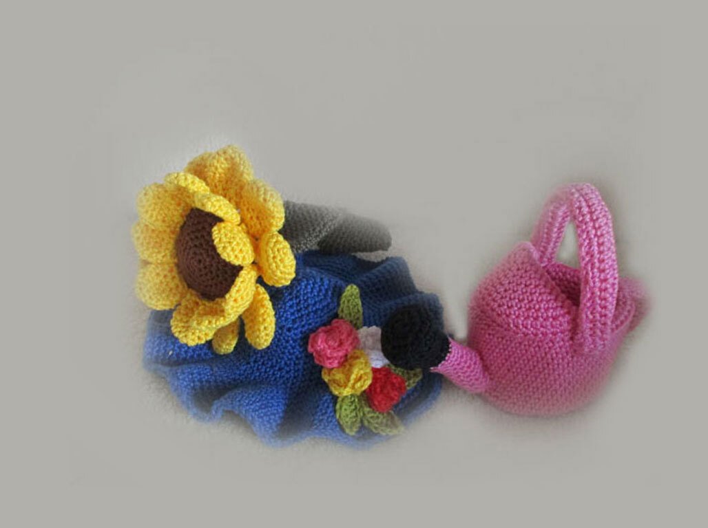 Phildar cotton: 3 x skincolor(= Phildar lait de rose), 2 x green, 1 x brown, 2 x yellow, 1 x white, 1 x pink, 1 x dark grey, 1 x blue, 1 x orange, little bit black, little bit red