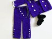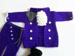 An adorable purple little suit. It definitely was made to resemble the "Purple Rain Outfit", but either way it is just an adorable 3 piece outfit. The stitches used are all basic stitches. It is made with worsted weight yearn, I used Loops n Threads "Impeccable" but any kind is doable. The pattern is written in US terminology and is for Newborn size. It is the Jacket, pants and the booties.