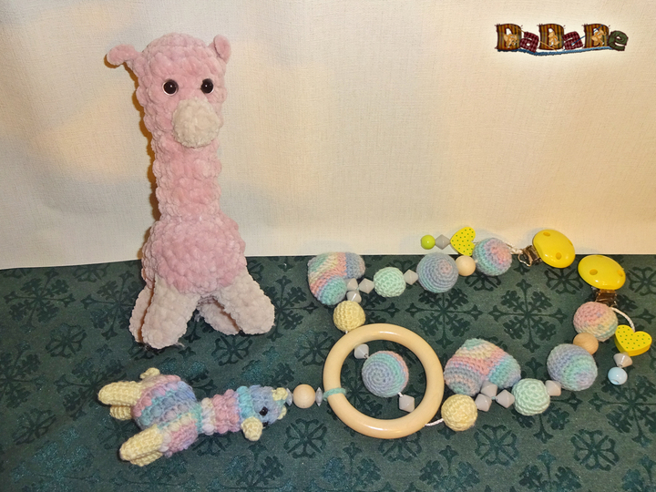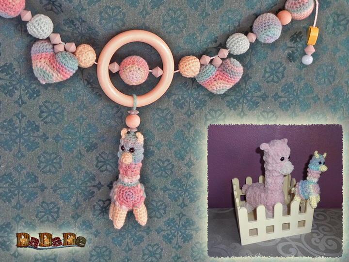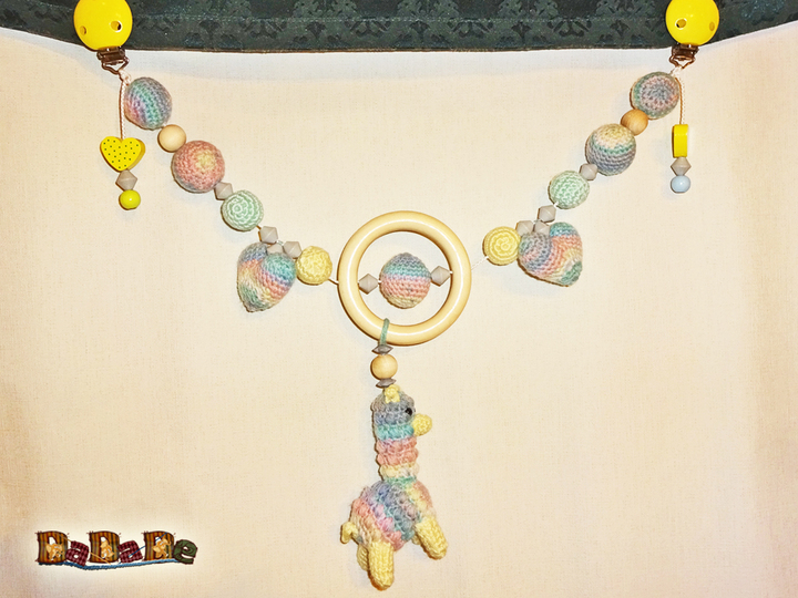 In die Kette, sowie in dem Kuscheltier kann man Rassel eingearbeitet, die Baby zum Spielen, Kuscheln und Greifen animieren.