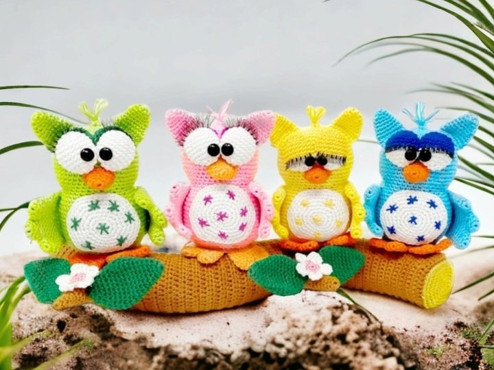 Crochet Pattern “4 little owls on tree trunk" from Diana´s kleiner Häkelshop