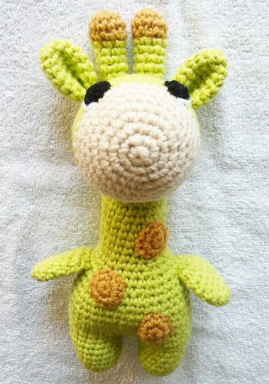 I love giraffes !! And I like this even more, it can be a small baby toy because it has no plastic eyes, cables or plastic that can harm it. Babies love to sleep with them or keep them while they feed! Older children like to play with them because their ears and horns catch their attention. Colors are your choice and can be a great family! You can do it for your children, grandchildren, cousins, friends, family or even for yourself! The finished dimensions are approx. 16 cm. The size may vary depending on the size of the needle and the wool.