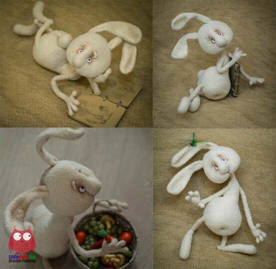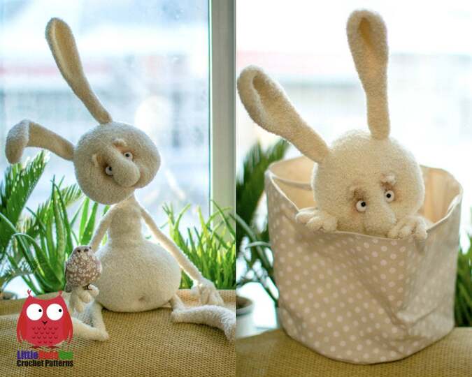 Approx. 40 cm/ 15.7 inches (without ears), approx. 70 cm/ 27.5 inches tall (standing with ears) using the materials stated in the pattern.