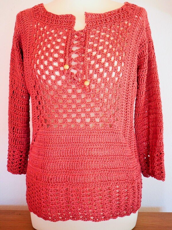 Die Häkelanleitung erklärt Dir Schritt für Schritt, wie Du Dir Die Häkelbluse Lona nacharbeiten kannst. Die Häkelanleitung hat einen mittleren Schwierigkeitsgrad.