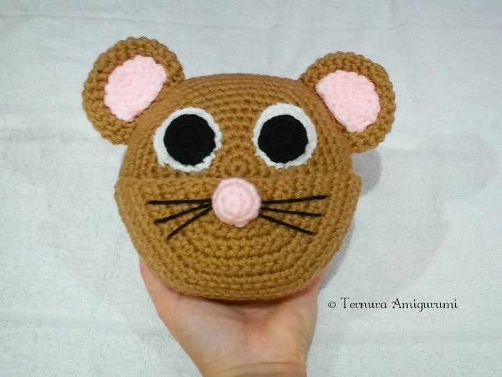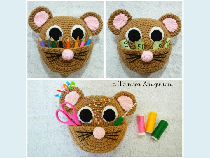 I had a lot of fun making this cute mouse, which can be useful for a seamstress or even for children when they lose their teeth, to keep pencils and paints at home, or for more stuff !! You can do it in gray, white or any other color that you like best. I do it in brown with wool of the brand "Otranto" of 2 mm and 1 mm for the whiskers. But you can do it with any wool! The finished dimensions are approx. 16 cm x 19 cm. The size can vary depending on the size of the needle and the wool.