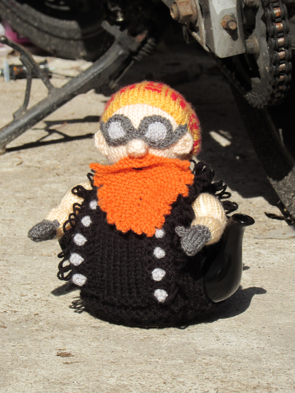 Having motorbike enthusiasts in my own family, it was great fun to create a biker tea cosy that played on the stereotypes of a Harley biker.