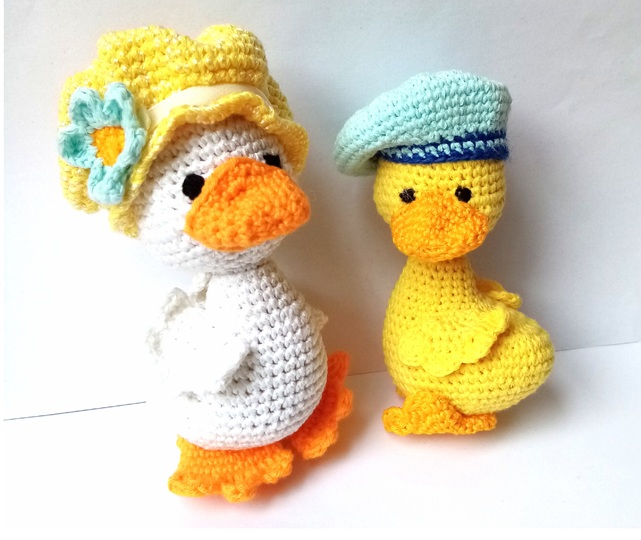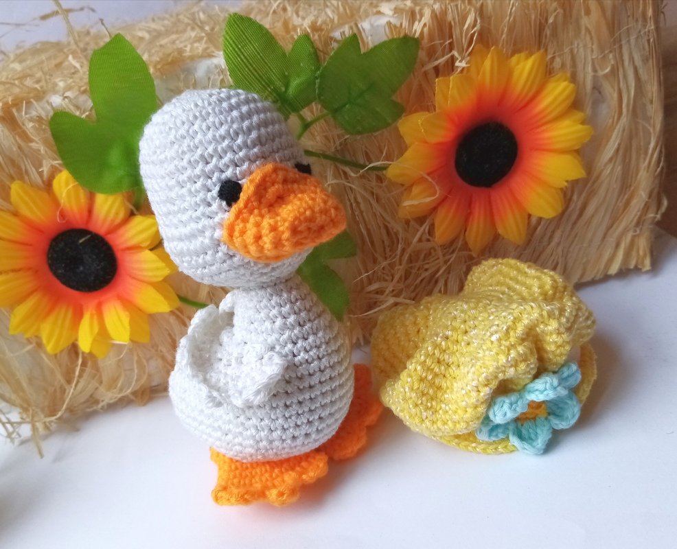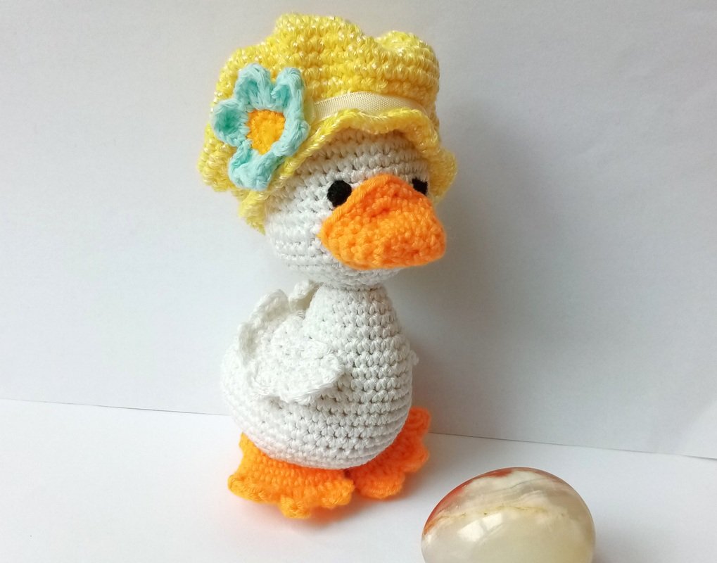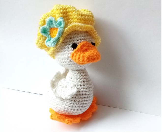 Little crochet amigurumi duck.