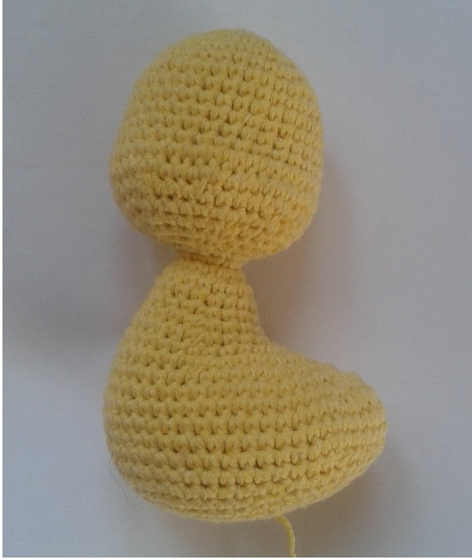 The body and head are made in one piece, and the beak, wings and legs are sewed on.